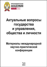 Актуальные вопросы государства и управления, общества и личности: материалы международной научно-практической конференции, 18–19 апреля 2023 г. : материалы конференций / под ред. Т. И. Разумовская, под ред. М. А. Князева, Российская академия народного хозяйства и государственной службы при Президенте Российской Федерации (Тульский филиал). - Тула : Тульский полиграфист 1, 2023. - 203 с.