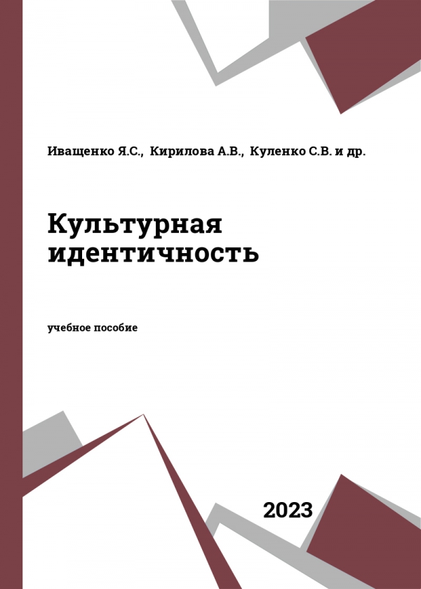 Культурная идентичность : учебное пособие / Иващенко Я. С., Кирилова А. В., Куленко С. В. [и др.] ; ред. Иващенко Я. С. - Новосибирский государственный технический университет, 2023. - ISBN 978-5-7782-4854-0 .