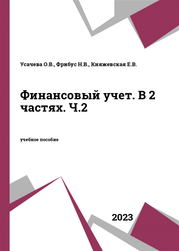 Финансовый учет. В 2 частях. Ч. 2 : учебное пособие / Усачева О. В., Фрибус Н. В., Княжевская Е. В. ; ред. Усачевой О. В. - Новосибирский государственный технический университет, 2023. -ISBN 978-5-7782-5097-0, 978-5-7782-5099-4 (ч. 2) .