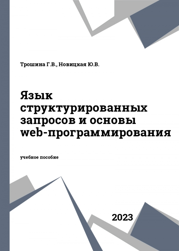 Язык структурированных запросов и основы web-программирования : учебное пособие / Трошина Г. В., Новицкая Ю. В. - Новосибирский государственный технический университет, 2023. -