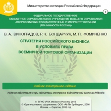 Стратегия российского бизнеса в условиях права Всемирной торговой организации : учебное пособие / Виноградов В. А., Бондарчук Р. Ч., Фомиченко М. П. - Всероссийский государственный университет юстиции (РПА Минюста России), Ай Пи Эр Медиа, 2016. -