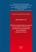 Влияние международных санкций на заключение и исполнение договоров международной купли-продажи: правовые аспекты : выпускная квалификационная работа (бакалаврская работа) : студенческая научная работа / А. М. Шестакова ; Правительство Российской Федерации, Национальный исследовательский университет «Высшая школа экономики», Факультет права, Кафедра международного публичного и частного права. - Москва, 2016. -111 с.