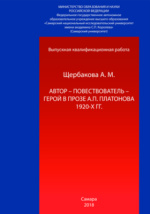 Автор–повествователь–герой в прозе А. П. Платонова 1920-х гг.: выпускная квалификационная работа : студенческая научная работа / А. М. Щербакова ; Самарский национальный исследовательский университет им. С. П. Королева, Социально-гуманитарный институт, Факультет филологии и журналистики, Кафедра русской и зарубежной литературы и связей с общественностью. - Самара, 2018. -