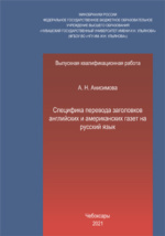 Специфика перевода заголовков английских и американских газет на русский язык : студенческая научная работа / А. Н. Анисимова ; Чувашский государственный университет им. И. Н. Ульянова, Факультет иностранных языков, Кафедра романо-германской филологии и переводоведения. - Чебоксары : б. и., 2021. -73 с.