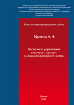 Наслежное управление в Якутской области (на примере Болугурского наслега): выпускная квалификационная работа : студенческая научная работа / А. Н. Ефремов ; Северо-Восточный федеральный университет им. М. К. Аммосова, Исторический факультет, Кафедра истории России. - Якутск, 2016. -