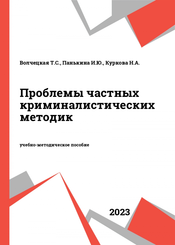 Проблемы частных криминалистических методик : учебно-методическое пособие / Волчецкая Т. С., Панькина И. Ю., Куркова Н. А. - Балтийский федеральный университет им. Иммануила Канта, 2023. -ISBN 978-5-9971-0733-8 .