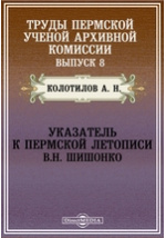 Указатель к Пермской летописи В. Н. Шишонко : справочник / А. Н. Колотилов. - Пермь : Типография Губернской земской управы, 1904. -80 с.