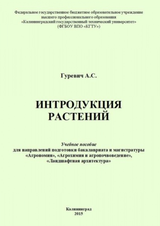 Интродукция растений : учебное пособие для направлений подготовки бакалавриата и магистратуры «агрономия», «агрохимия и агропочвоведение», «ландшафтная архитектура» / Гуревич А. С. - Калининградский государственный технический университет, 2015.