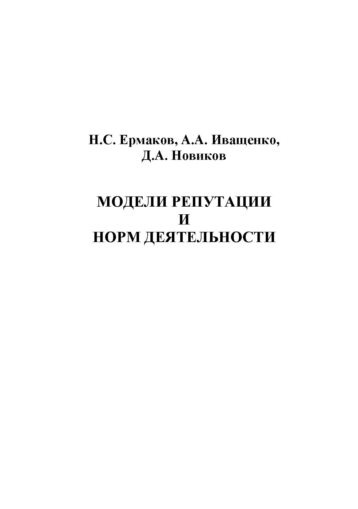 Модели репутации и норм деятельности : монография / Ермаков Н. С., Иващенко А. А., Новиков Д. А. - ИПУ РАН, 2005. -ISBN - .