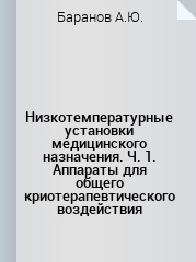 Баранов, А. Ю. Низкотемпературные установки медицинского назначения : учебное пособие / А. Ю. Баранов. — Санкт-Петербург : НИУ ИТМО, [б. г.]. — Часть 1 : Аппараты для общего криотерапевтического воздействия — 2016. — 178 с.