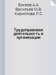 Бикеев, А. А. Трудоправовая деятельность в организации : учебное пособие / А. А. Бикеев, М. В. Васильев, Л. С. Кириллова. — Москва : СТАТУТ, 2015. — 140 с. — ISBN 978-5-8354-1083-5.