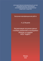 Автоматизация получения данных и выбора показателей в исследуемых образцах на примере ФГБУ «НЦБРП» : студенческая научная работа / А. Д. Вощиков. - Москва : б. и., 2022. -121 с.