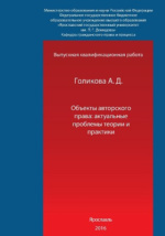 Объекты авторского права: актуальные проблемы теории и практики : дипломная работа бакалавра : студенческая научная работа / А. Д. Голикова ; Ярославский государственный университет им. П. Г. Демидова, Юридический факультет, Кафедра гражданского права и процесса. - Ярославль, 2016. -88 с.