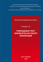 Поликодовый текст онлайн-игры как объект локализации : студенческая научная работа / А. Д. Глянцева ; Российский государственный педагогический университет им. А. И. Герцена. - Санкт-Петербург : б. и., 2020. -61 с.