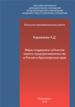 Меры поддержки субъектов малого предпринимательства в России и Красноярском крае: выпускная квалификационная работа (бакалаврская работа) : студенческая научная работа / А. Д. Караваева ; Красноярский филиал Академии труда и социальных отношений, Кафедра финансы и кредит. - Красноярск, 2016. -139 с.