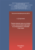 Оценка влияния цены на углерод и иных экологических факторов на углеродоемкость экономик стран мира : студенческая научная работа / А. Д. Крутилина ; Новосибирский национальный исследовательский государственный университет, Экономический факультет, Кафедра политической экономии. - Новосибирск : б. и., 2022. -
