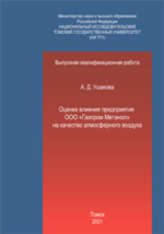 Оценка влияния предприятия ООО "Газпром Метанол" на качество атмосферного воздуха : студенческая научная работа / А. Д. Ушакова ; Национальный исследовательский Томский государственный университет (НИ ТГУ), Геолого-географический факультет. - Томск : б. и., 2021. -66 с.