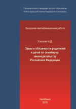 Права и обязанности родителей и детей по семейному законодательству Российской Федерации: выпускная квалификационная работа (бакалаврская работа) : студенческая научная работа / А. Д. Хлызова ; Южно-Уральский институт управления и экономики, Кафедра юриспруденции и гуманитарных дисциплин. - Челябинск : б. и., 2019. -