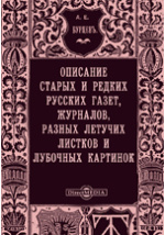 Описание старых и редких русских газет, журналов, разных летучих листков и лубочных картинок : справочник / А. Е. Бурцев. - Санкт-Петербург : б. и., 1901. -136 с.