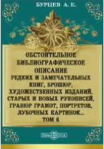 Обстоятельное библиографическое описание редких и замечательных книг, брошюр, художественных изданий, старых и новых рукописей, гравюр грамот, портретов, лубочных картинок : библиографическое пособие / А. Е. Бурцев. - Санкт-Петербург : Типография Акционерного Общества «Брокгауз-Ефрон», 1901. -
