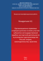 Организационно-правовые и процессуальные основы участия субъектов негосударственной судебно-экспертной деятельности в уголовном судопроизводстве России: теория, законодательство, практика: магистерская диссертация : студенческая научная работа / А. Е. Кондратьев ; Омский государственный университет им. Ф. М. Достоевского, Юридический факультет, Кафедра уголовного процесса и криминалистики. - Омск, 2017. -