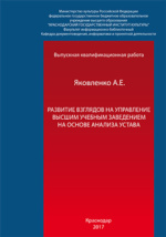 Развитие взглядов на управление высшим учебным заведением на основе анализа устава: выпускная квалификационная работа : студенческая научная работа / А. Е. Яковленко ; Министерство культуры Российской Федерации, Краснодарский государственный институт культуры, Информационно-библиотечный факультет, Кафедра документоведения, информатики и проектной деятельности. - Краснодар, 2017. -