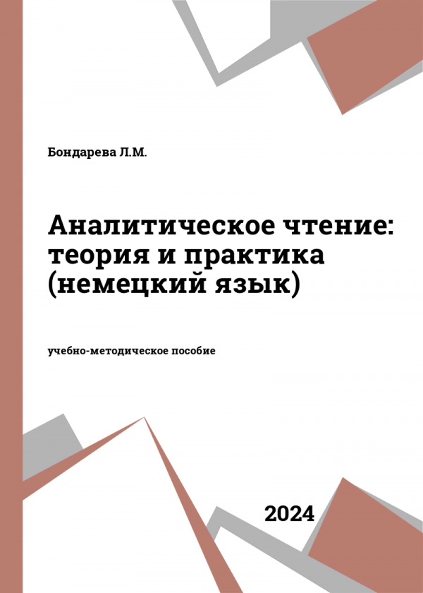 Аналитическое чтение: теория и практика (немецкий язык) : учебно-методическое пособие / Бондарева Л. М. - Балтийский федеральный университет им. Иммануила Канта, 2024. -ISBN 978-5-9971-0825-0 .