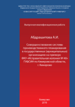 Совершенствование системы производственного планирования в государственных (муниципальных) организациях на примере ФКУ «Исправительная колония № 40» ГУФСИН по Кемеровской области, г. Кемерово": выпускная квалификационная работа : студенческая научная работа / А. И. Абдрашитова ; Кузбасский государственный технический университет им. Т. Ф. Горбачева, Институт экономики и управления, Кафедра управленческого учета и анализа. - Кемерово, 2018. -