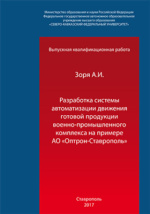 Разработка системы автоматизации движения готовой продукции военно-промышленного комплекса: выпускная квалификационная работа : студенческая научная работа / А. Зоря ; Северо-Кавказский федеральный университет, Институт экономики и управления, Кафедра бизнес-информатики. - Ставрополь, 2017. -