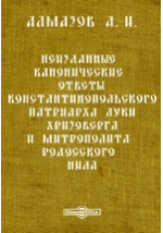 Неизданные канонические ответы Константинопольского патриарха Луки Хризоверга и митрополита Родосского Нила / А. И. Алмазов. - Одесса : Экономическая типография, 1903. -