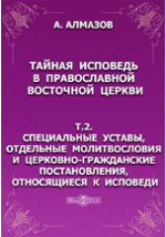 Тайная исповедь в православной восточной церкви. Т. 2. Специальные уставы, отдельные молитвословия и церковно-гражданские постановления, относящиеся к исповеди. / А. И. Алмазов. - Типо-литография Штаба Одесского военного Округа, 1894. -