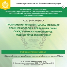 Проблемы исполнения наказания в виде лишения свободы, реализация права осужденных на качественное медицинское обеспечение : учебное пособие / Борсученко С. А. - Всероссийский государственный университет юстиции (РПА Минюста России), Ай Пи Эр Медиа, 2016. -ISBN 978-5-00094-303-8 .