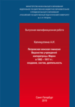 Петровская женская гимназия Ведомства учреждений императрицы Марии в 1862 – 1917 гг.: создание, состав, деятельность: выпускная квалификационная работа : студенческая научная работа / А. И. Калимуллина ; Российский государственный педагогический университет им. А. И. Герцена, Кафедра русской истории. - Санкт-Петербург : б. и., 2019. -