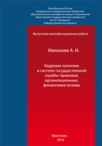 Кадровая политика в системе государственной службы: организационные, правовые, финансовые основы : выпускная квалификационная работа : студенческая научная работа / А. И. Малахова ; Ярославский государственный университет им. П. Г. Демидова, Экономический факультет, Кафедра финансов и кредита. - Ярославль, 2018. -