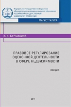 Правовое регулирование оценочной деятельности в сфере недвижимости : лекция / Бурмакина Н. И. - Российский государственный университет правосудия, 2017. -ISBN 978-5-93916-590-7 .