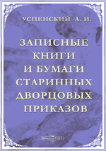 Записные книги и бумаги старинных дворцовых приказов. Документы XVIII-XIX вв. бывшего Архива Оружейной Палаты / А. И. Успенский. - Москва : Печатня А. И. Снегиревой, 1906. -