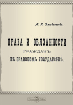 Права и обязанности граждан в правовом государстве / А. К. Дживелегов. - Б. м. : Книгоиздательство "Труд и воля", 1906. -