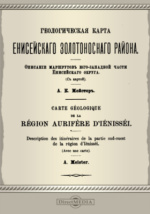 Геологическая карта Енисейского золотоносного района: описание маршрутов юго-западной части Енисейского округа / А. К. Мейстер. - Санкт-Петербург : Типография М. М. Стасюлевича, 1908. -153 с.