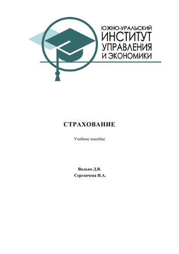 Страхование : учебное пособие / Валько Д. В., Сергеичева И. А. - Южно-Уральский институт управления и экономики, 2017. -ISBN 978-5-9909865-0-3 .