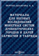 Материалы для весовых исследований монетных систем древнегреческих городов и царей Сарматии и Тавриды / А. Л. Бертье-Делагард. - Москва : Тип. Г. Лисснера и Д. Собко, 1912. -
