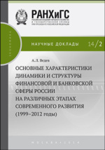 Основные характеристики динамики и структуры финансовой и банковской сферы России на различных этапах современного развития (1999-2012 годы) / А. Л. Ведев ; Российская академия народного хозяйства и государственной службы при Президенте Российской Федерации. - Москва : Дело, 2014. -