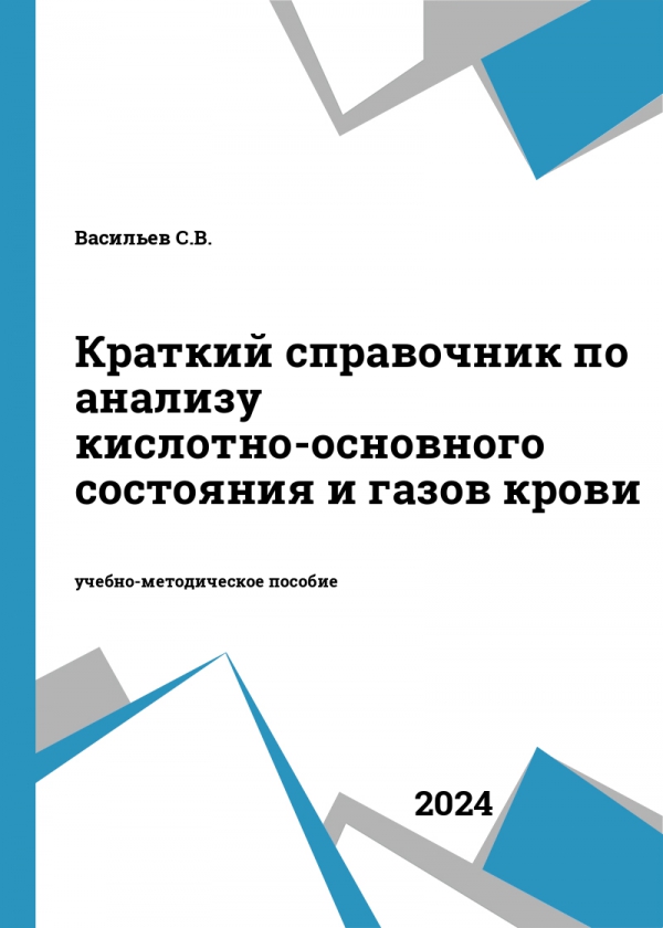 Краткий справочник по анализу кислотно-основного состояния и газов крови : учебно-методическое пособие для клинических ординаторов / Васильев С. В. - Новосибирский государственный технический университет, 2024. -ISBN 978-5-7782-5169-4 .