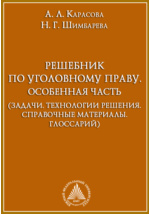 Решебник по уголовному праву. Особенная часть: задачи, технологии решения, справочные материалы, глоссарий : учебное пособие / А. Л. Карасова, Н. Г. Шимбарева ; Федеральное агентство по образованию Российской Федерации, Южный федеральный университет. - Ростов-на-Дону : Южный федеральный университет, 2009. -192 с. - ISBN 978-5-9275-0621-7 .