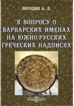 К вопросу о варварских именах на южно-русских греческих надписях / А. Л. Погодин. - Санкт-Петербург : Типография Императорской Академии Наук, 1901. -43 с.