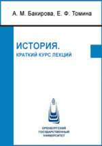 История: краткий курс лекций : курс лекций / А. М. Бакирова, Е. Ф. Томина ; Оренбургский государственный университет. - Оренбург : Оренбургский государственный университет, 2017. -367 с. - ISBN 978-5-7410-1786-9 .