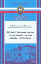 Уголовно-правовая оценка субъективной стороны состава преступления : учебное пособие / Векленко С. В., Бавсун М. В. - Омская академия МВД России, 2006. -