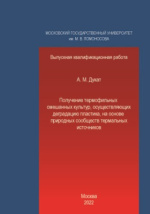 Получение термофильных смешанных культур, осуществляющих деградацию пластика, на основе природных сообществ термальных источников : студенческая научная работа / А. М. Дукат ; Московский государственный университет им. М. В. Ломоносова, Биологический факультет, Кафедра микробиологии. - Москва : б. и., 2022. -72 с.