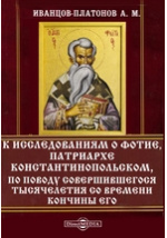 К исследованиям о Фотие, Патриархе Константинопольском, по поводу совершившегося тысячелетия со времени кончины его / А. М. Иванцов-Платонов. - Санкт-Петербург : Типография В. С. Балашева, 1892. -225 с.