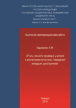 Роль личного примера учителя в воспитании культуры поведения младших школьников: выпускная квалификационная работа : студенческая научная работа / А. М. Карасенко ; Ростовский государственный экономический университет (РИНХ), Таганрогский институт им. А. П. Чехова (филиал) РГЭУ (РИНХ), Факультет педагогики и методики дошкольного начального и дополнительного образования, Кафедра педагогики и социокультурного развития личности. - Таганрог : б. и., 2019. -