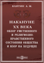Накануне XX века. Обзор умственного и религиозно-нравственного состояния общества и взор на будущее / А. М. Клитин. - Киев : Типография Императорского Университета св. Владимира. Акционерного общества печати и издательского дела Н. Т. Корчак-Новицкого, 1899. -